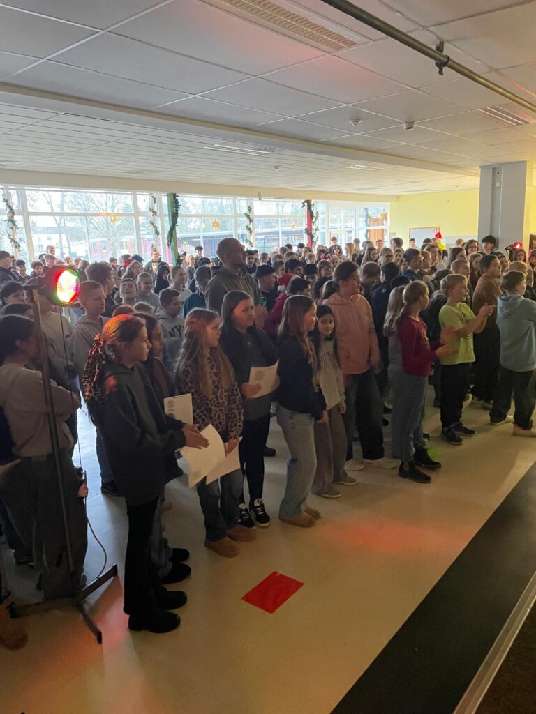 Am letzten Schultag vor den Ferien hat die gesamte Schule gemeinsam ein paar Weihnachtslieder gesungen. Begleitet wurde der Chor von einer kürzlich ins Leben gerufenen Weihnachtsband, die einen tollen Job gemacht hat.